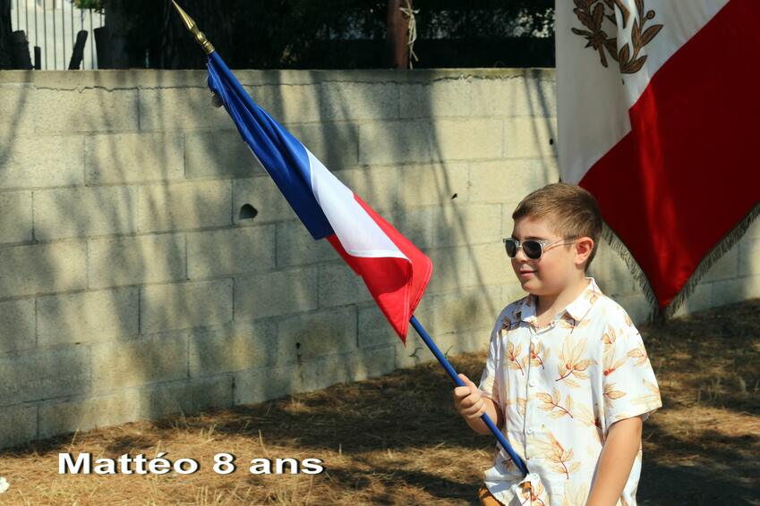 Un public moins nombreux et moins de porte-drapeaux du fait des vacances, mais on pouvait toutefois remarquer Mattéo un jeune porte-drapeau de 8 ans qui nous a permis de constater que la « relève » était bien assurée.