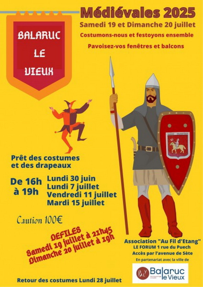 La vingt-huitième édition des Médiévales de Balaruc-le-Vieux (Hérault -34) aura lieu le Samedi 19 juillet et le Dimanche 20 juillet 2025 de 9h à 24h.