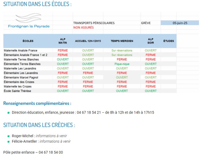 Grève nationale du 5 juin : perturbations attendues dans les écoles et crèches de Frontignan la Peyrade