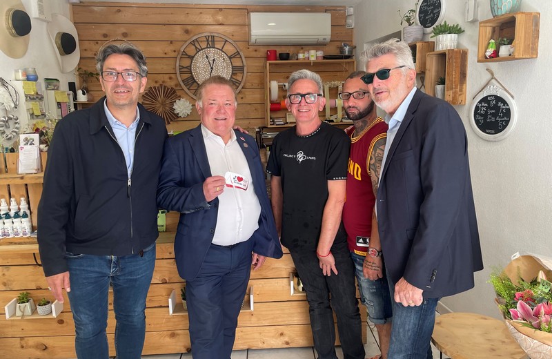 Après un accueil à l’Hôtel de Ville permettant de présenter les enjeux liés au développement économique de Frontignan la Peyrade et les actions programmées en ce sens, Michel Arrouy, maire de la ville, conseiller communautaire, et Patrick Bourmond, conseiller municipal délégué au commerce et à l'artisanat, ont accompagné Christian Poujol, président de la chambre de métiers et de l’artisanat de l’Hérault, dans le centre-ville.