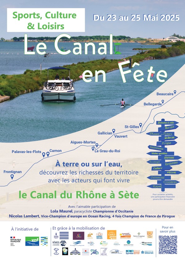 Pour cette 2e édition Voies navigables de France (VNF) élargit l’expérience  de "Canal en Fête", du vendredi 23 au dimanche 25 mai 2025. Trois jours d’animations gratuites, conviviales et ouvertes à tous, le long du canal du Rhône à Sète, pour célébrer les liens forts qui unissent ce territoire fluvial à ses habitants, du Gard à l’Hérault.