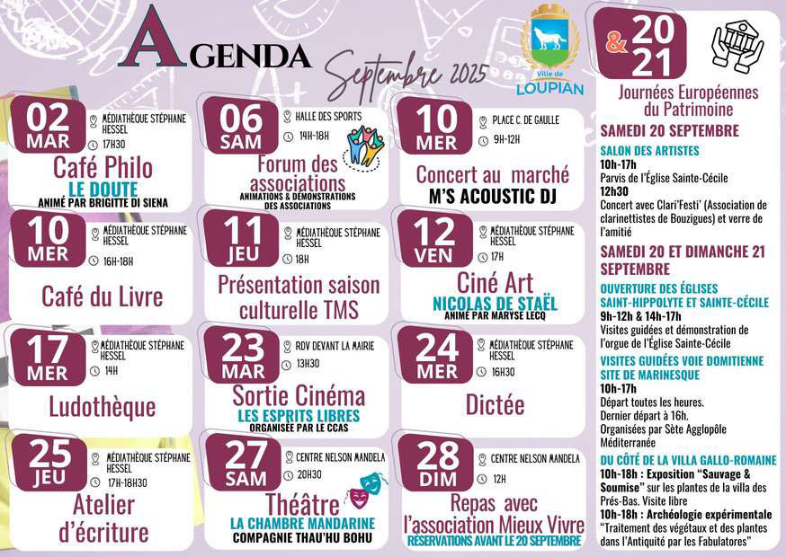 Retrouvez tous les détails des évènements de Loupian en téléchargeant l'agenda de septembre 2025.