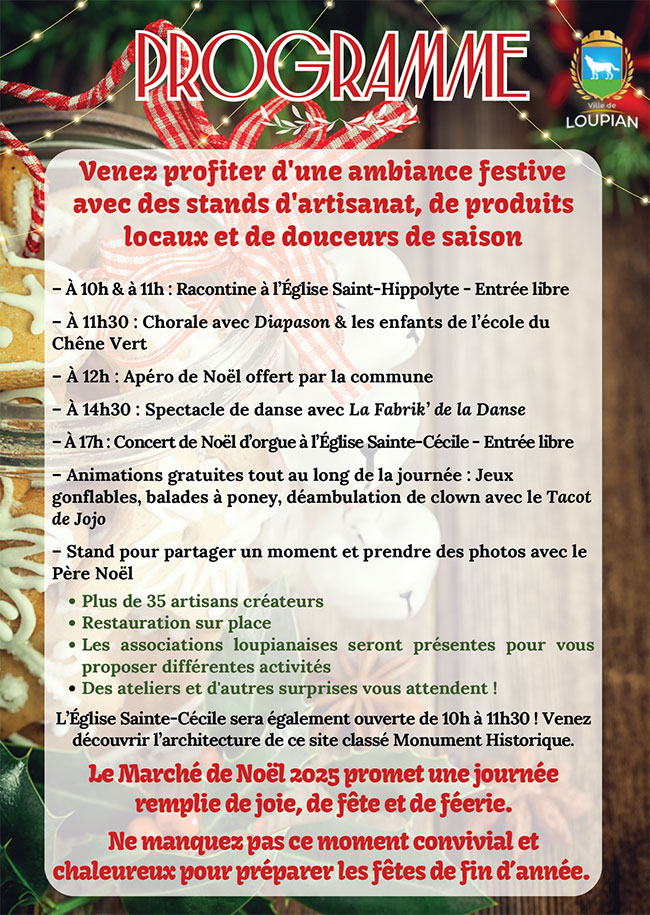 Marché de Noël le dimanche 7 décembre sur la Place du Général de Gaulle à LOUPIAN !