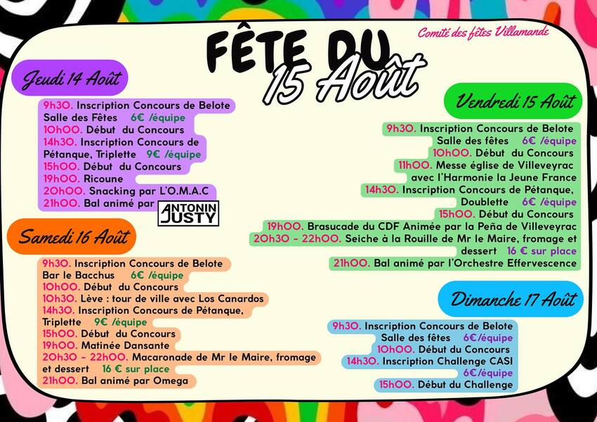 Le vendredi 23 mai, la semaine se terminera sur une note joyeuse. À 14h, les CE2 des écoles animeront un après-midi festif à la salle Marcel Peysson, avec la présence du P’tit Veydrac, de M. Camerlo, de chants, danses et contes.