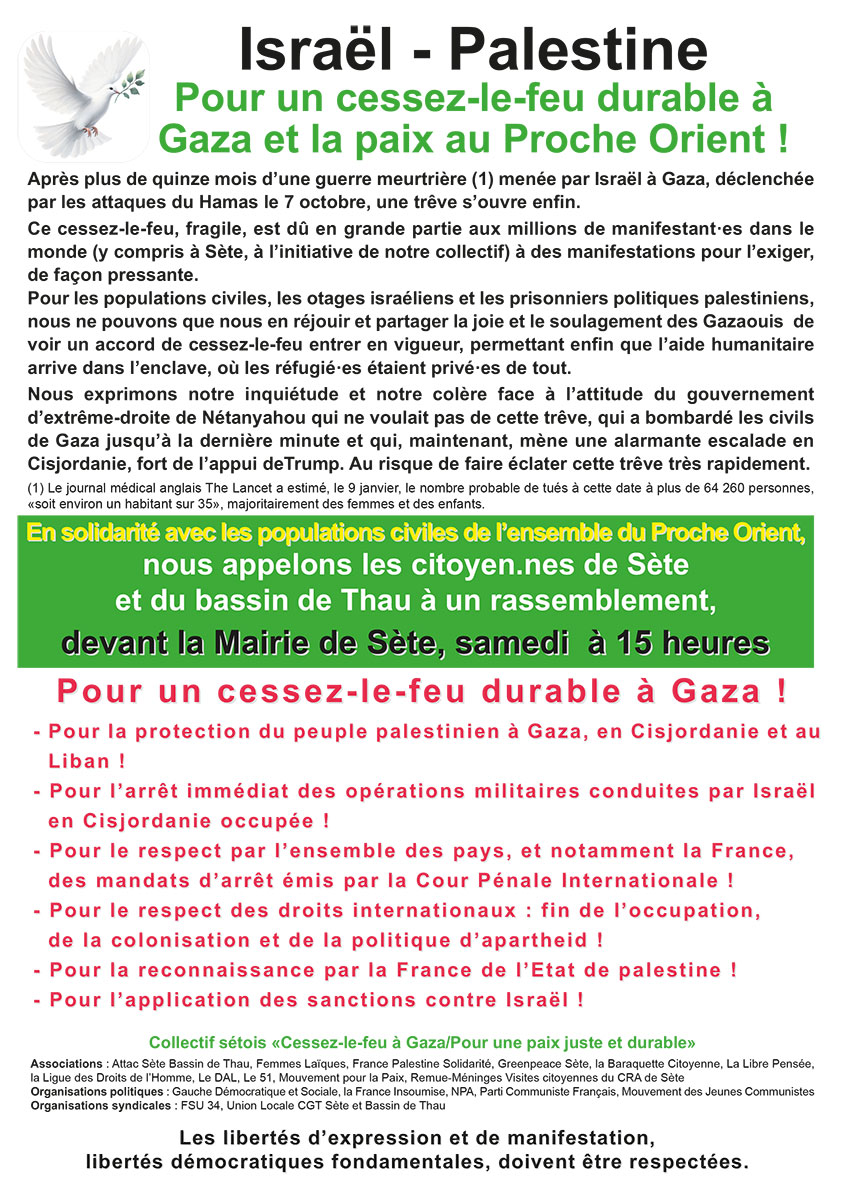 Collectif sétois «Cessez-le-feu à Gaza/Pour une paix juste et durable»