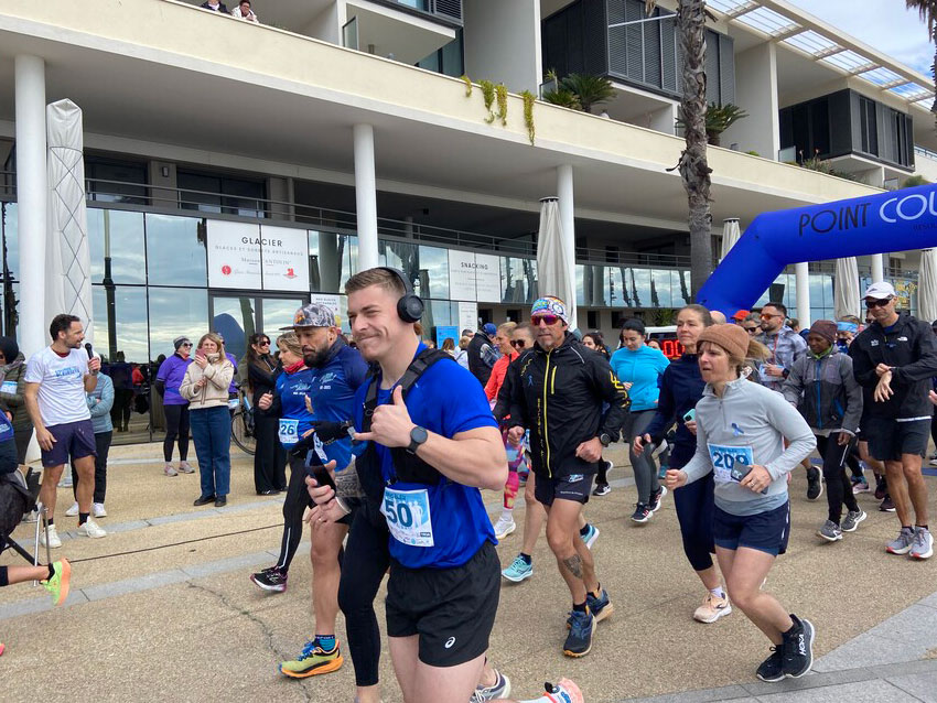 Malgré un vent froid qui soufflait sur la côte, l'ambiance était chaleureuse et déterminée. Les participants se sont échauffés ensemble, 30 minutes avant le départ, au rythme de la musique. De leur côté, les associations ont diffusé chacune leur tour des messages de prévention et de solidarité au micro.