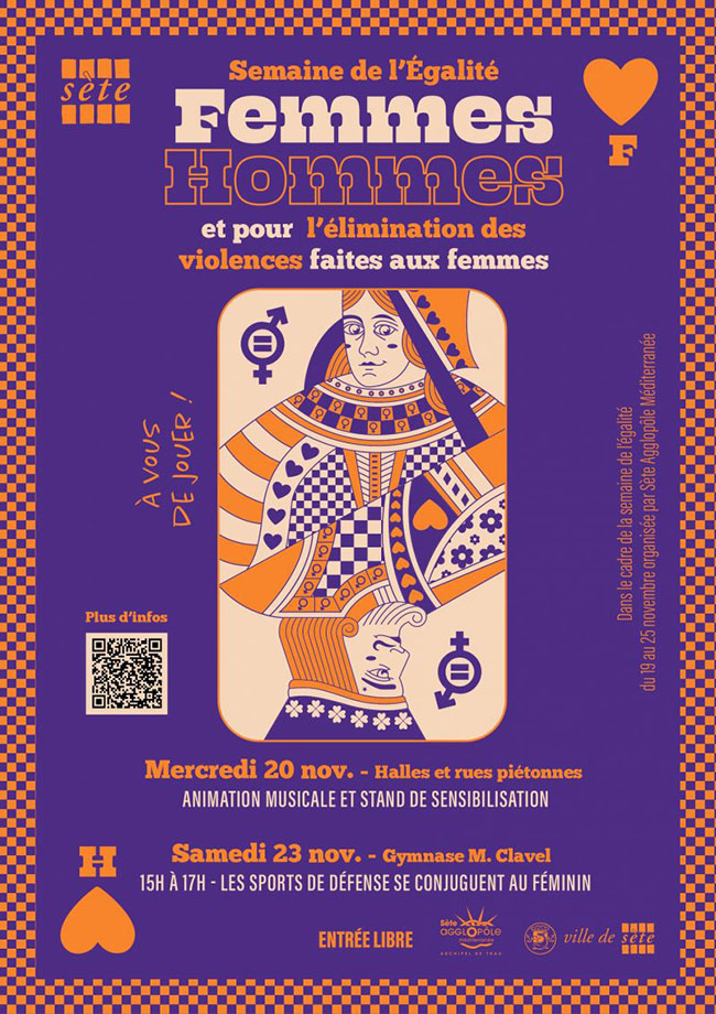 - Samedi 23 novembre : les sports de défense se conjuguent au féminin, de 15h à 17h au gymnase Maurice-Clavel avec la participation des clubs Xplosif, Jiu-jitsu Grappling et Association sétoise de krav maga.