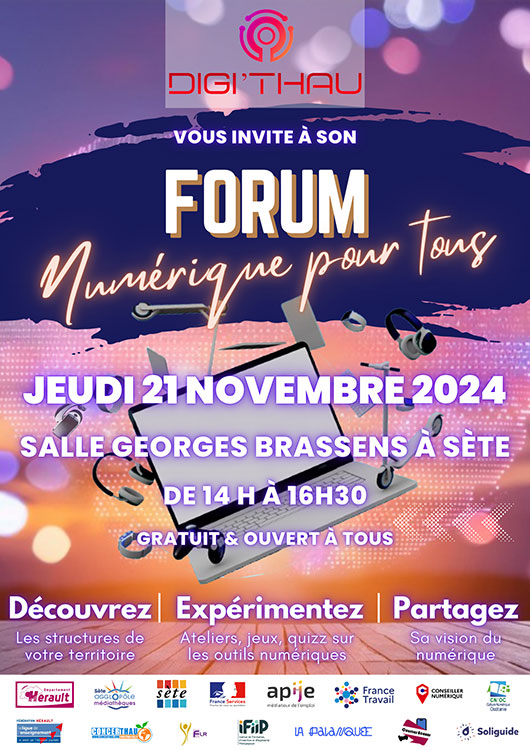 Organisé par le réseau Digi’Thau, ce forum s’inscrit dans une démarche d’inclusion numérique pour tous. En facilitant l’accès aux outils et aux savoirs numériques, Digi’Thau contribue à réduire la fracture numérique sur le territoire et à renforcer l’autonomie de chacun.