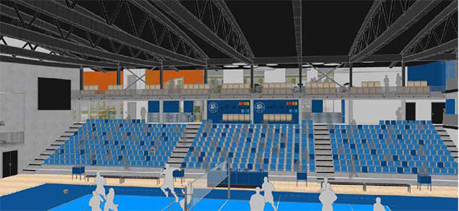 La dimension du terrain sportif sera augmentée pour correspondre à l’homologation nécessaire, à savoir un plateau technique de 35x23m au sein duquel sera placé un espace d’évolution de 28x15m avec une hauteur libre de 9 m minimum.