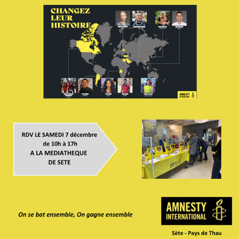- Dimanche 24 novembre, de 10h à 13h, sur le parvis des Halles : stand de sensibilisation dans le cadre de la journée contre les violences sexistes et sexuelles faites aux femmes, par l’association Amnesty international. A 11h, le collectif Présentes ! Le planning familial et la chorale à poils et à paillettes se joindront au stand.